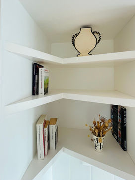 Dans ce petit espace, l'optimisation d'espace grâce aux meubles sur-mesure était indispensable et a permis d'intégrer une chambre, une pièce de vie avec cuisine et une salle de bain.